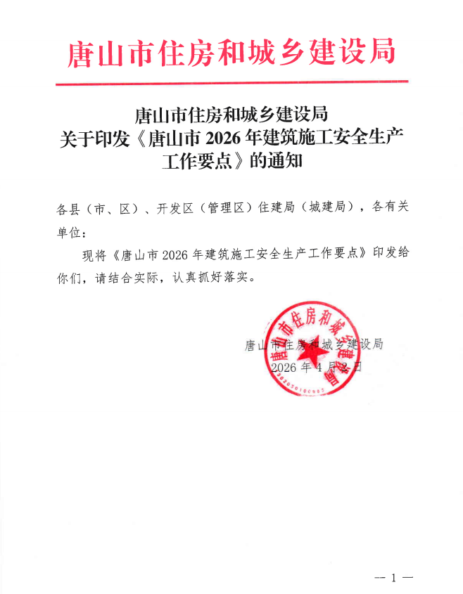关于印发《2026年唐山市建筑施工安全生产工作要点》的通知