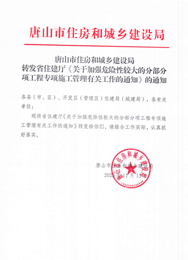 转发省住建厅《关于加强危险性较大的分部分项工程专项施工管理有关工作的通知》