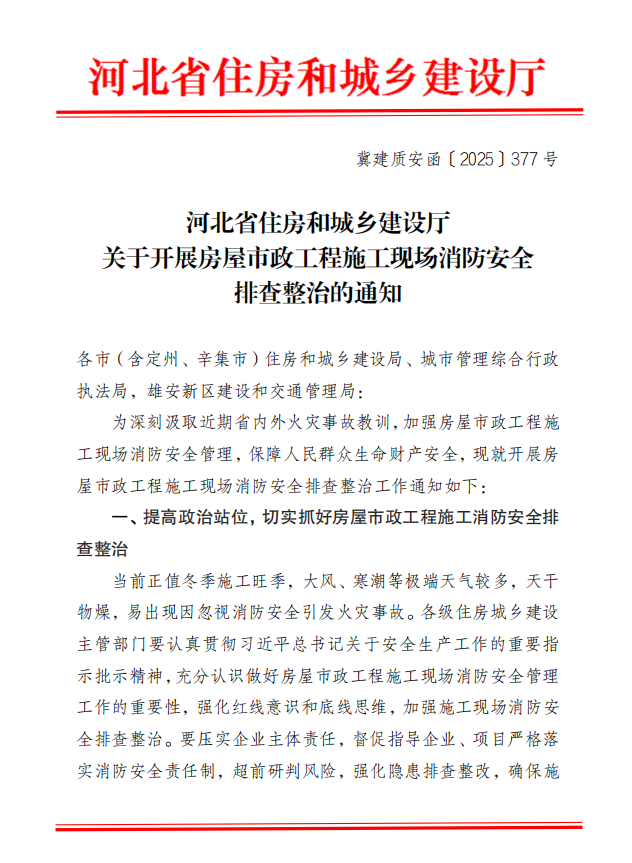河北省住建厅《关于加强冬季建筑施工安全生产工作的通知 》