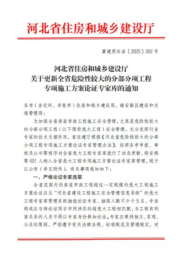 关于更新全省危险性较大的分部分项工程专项施工方案论证专家库的通知
